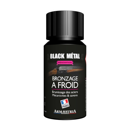 BLACK METAL est un produit de brunissage des aciers, des armes (fusils, pistolets...) à température ambiante, donnant un trés bel aspect noir bleuâtre.