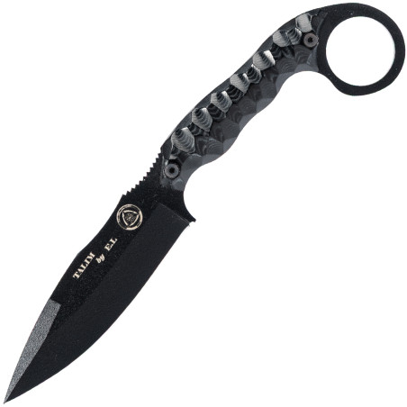 L'anneau du couteau, d'un diamètre de 25 mm, assure une bonne préhension en sortie d'étui. La lame est noire anti-reflet. Ce modèle est disponible avec un manche en paracorde noir, urban camo ou woodland camo.